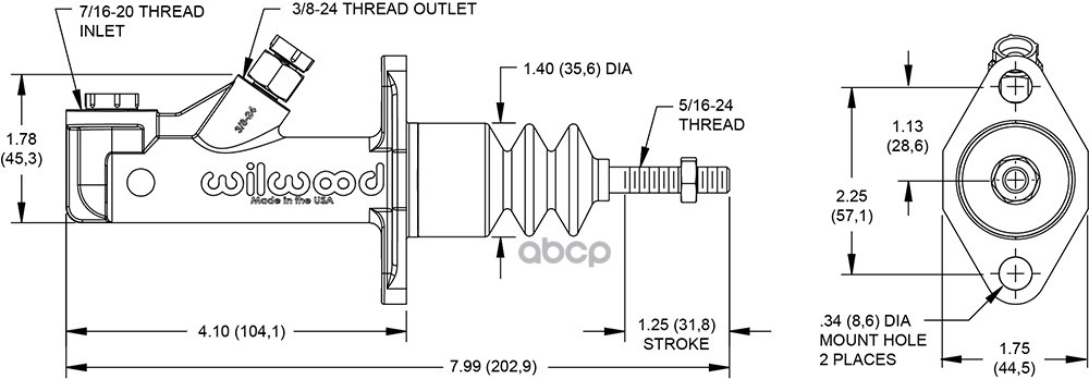 Цилиндр главный тормозной диаметр 0.750 3 4, ход - 1,25 универсальный алюминиевый выход 3 8-24 W