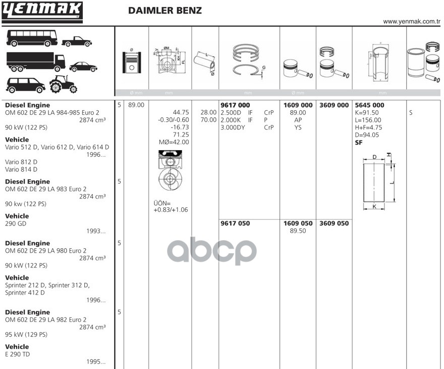 Фирма Yenmak производит широкий ассортимент продукции, включающий в себя гильзы, поршни, кольца и вкладыши для двигателей с сухим, водяным и воздушным охлаждением, которые реализуются на обширной территории.