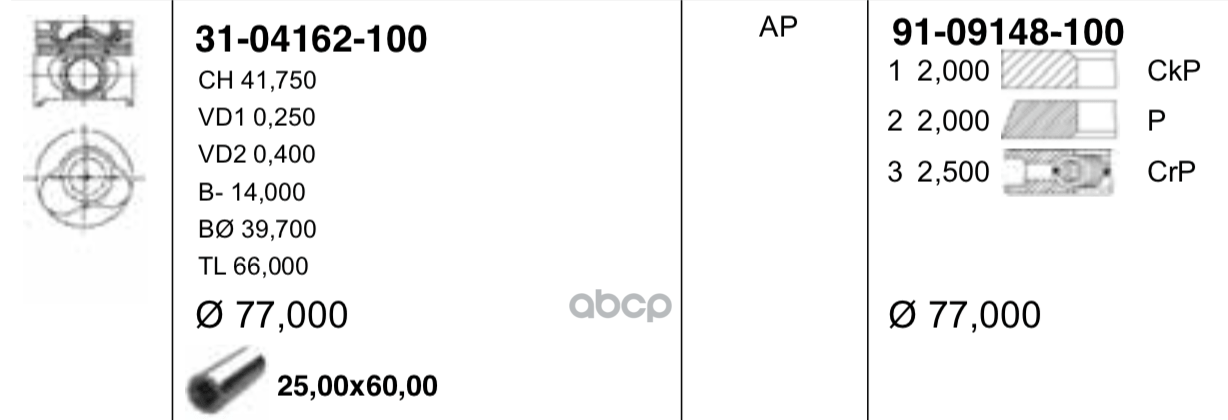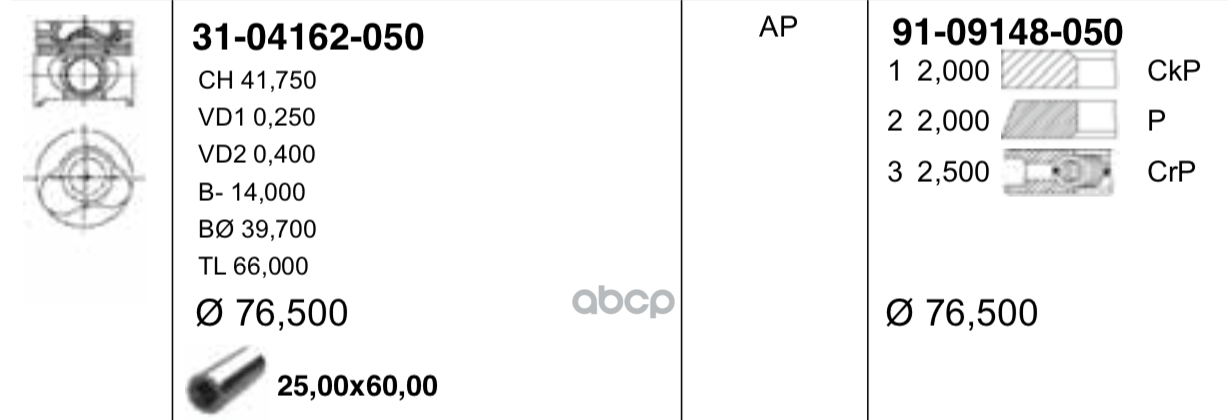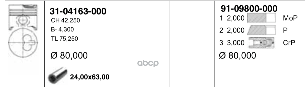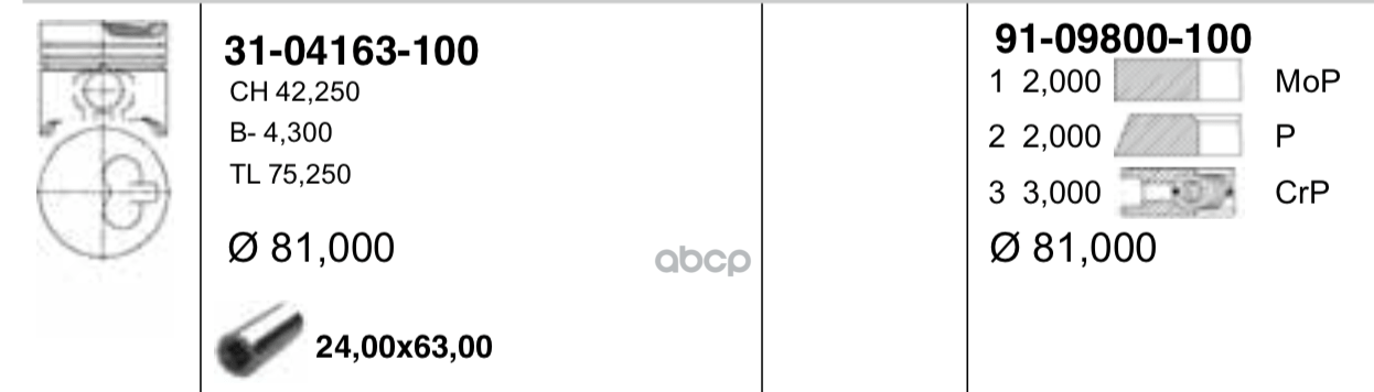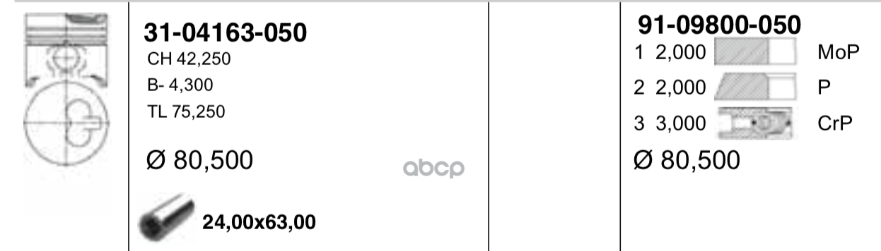 поршень с кольцамиd79.5x1.5x1.5x2.5 +0.5Renault Laguna/Clio/Megane/Kangoo 1.6 16V 98>