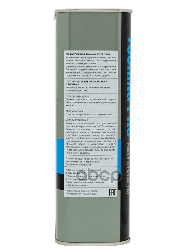 Наименование: Масло моторное 0W-30 ZEPRO TOURING PRO FS SP/CF/GF-6A (1л) 0W-30 ZEPRO TOURING PRO FS SP/CF/GF-6A