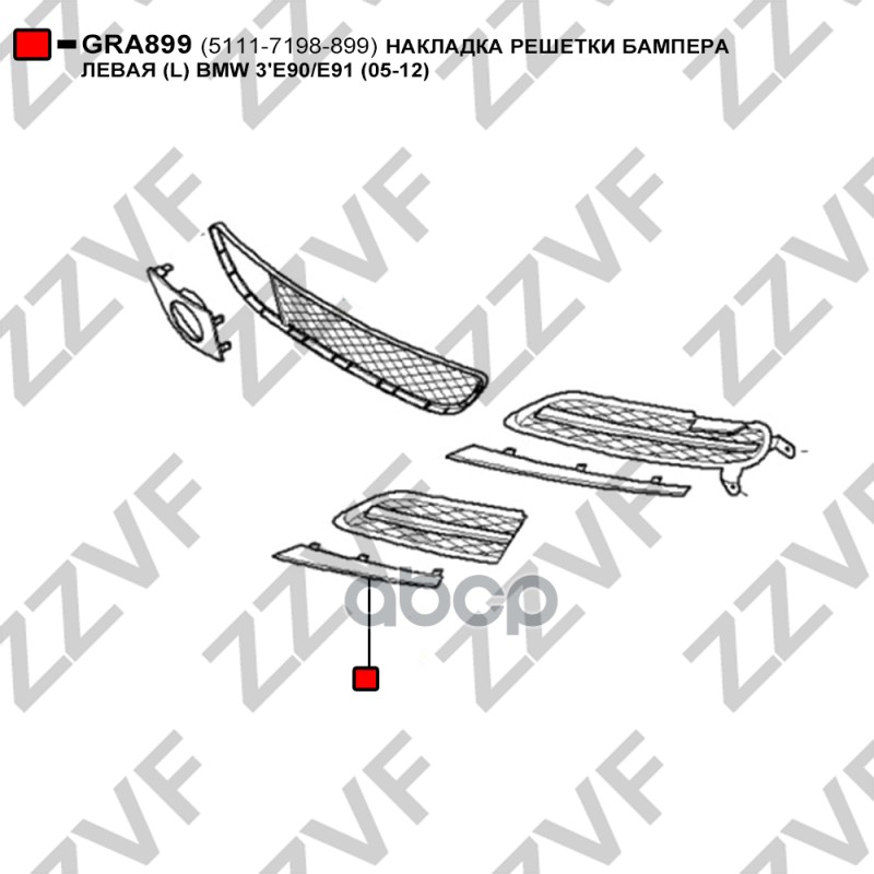 Купить запчасть GRA899 Накладка решетки бампера левая L с доставкой в Эль-Монте.