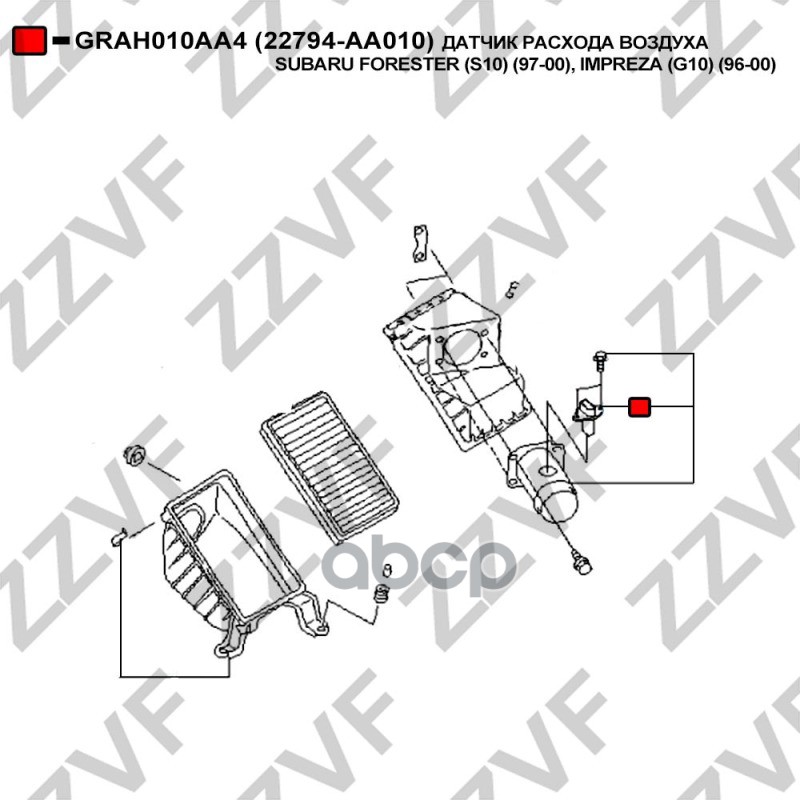 Бренд: ZZVF, артикул: GRAH010AA4, 22794-AA010 ДАТЧИК МАССОВОГО РАСХОДА ВОЗДУХА SUBAR. |