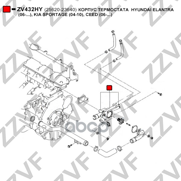 Купить запчасть ZV432HY КОРПУС ТЕРМОСТАТА HYUNDAI ELANTRA 06-..., KIA SPORTAGE 04-10, CEED 06-... с доставкой в Эль-Монте.