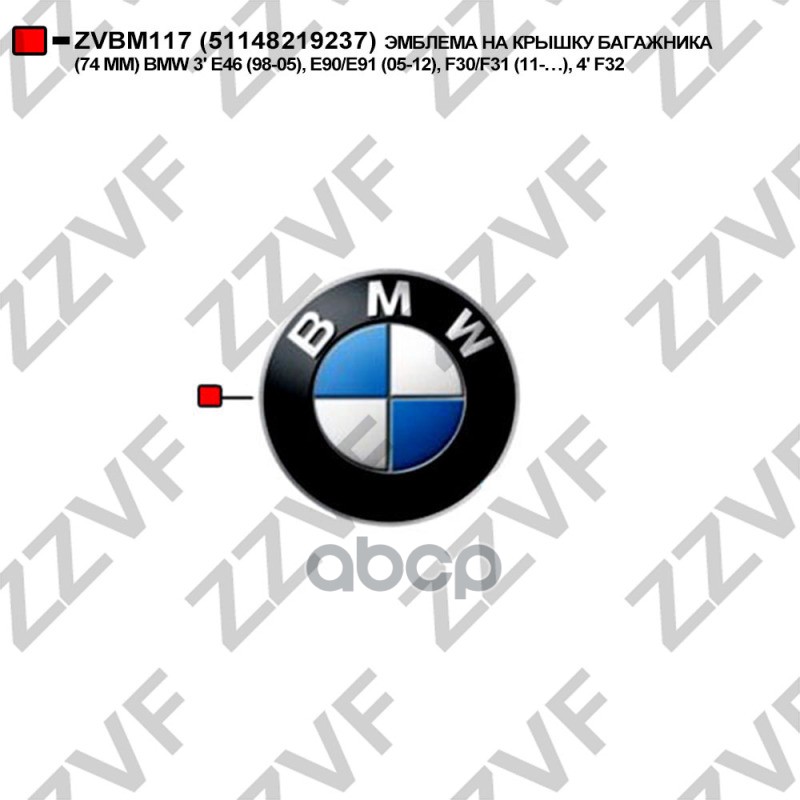 Купить запчасть ZVBM117 ЭМБЛЕМА НА КРЫШКУ БАГАЖНИКА 74 ММ BMW 3 E46 98- с доставкой в Эль-Монте.