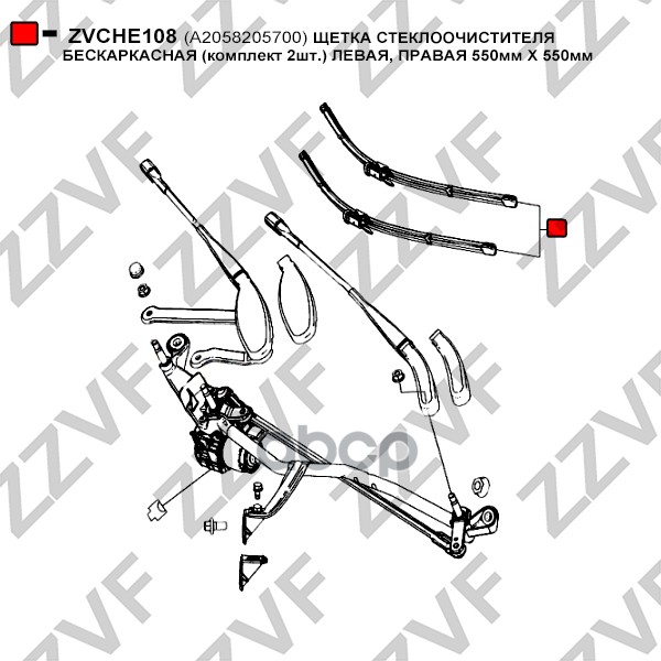 Купить запчасть ZVCHE108 ЩЕТКА СТЕКЛООЧИСТИТЕЛЯ БЕСКАРКАСНАЯ КОМПЛЕКТ 2ШТ. с доставкой в Эль-Монте.