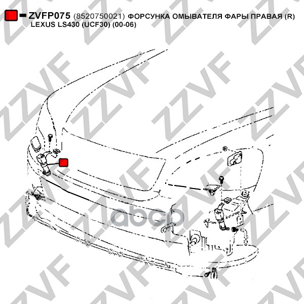 Купить запчасть ZVFP075 ФОРСУНКА ОМЫВАТЕЛЯ ФАРЫ ПРАВАЯ R LEXUS LS430 U с доставкой в Эль-Монте.