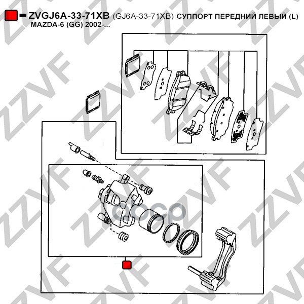 Бренд: ZZVF, артикул: ZVGJ6A3371XB, СУППОРТ ПЕРЕДНИЙ ЛЕВЫЙ L MAZDA-6 GG 2002-.... |