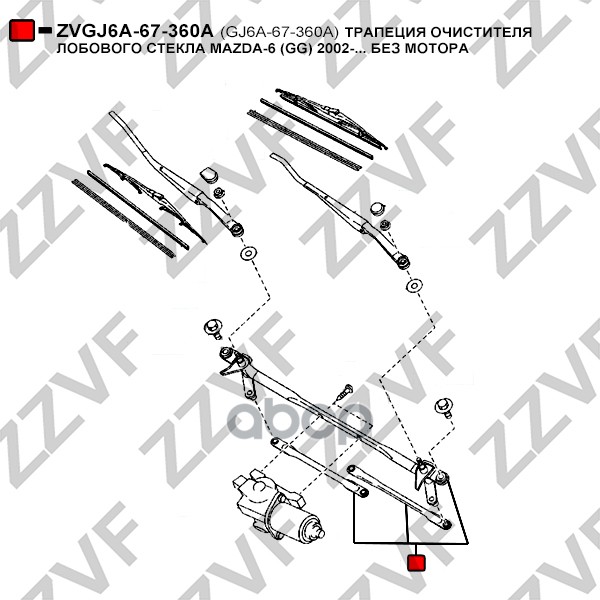 Бренд: ZZVF, артикул: ZVGJ6A67360A, ТРАПЕЦИЯ ОЧИСТИТЕЛЯ ЛОБОВОГО СТЕКЛА MAZDA-6 GG 2. |