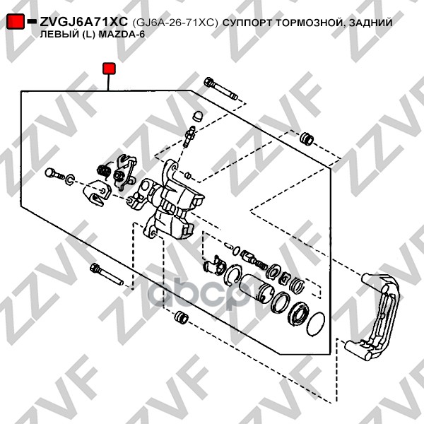 Бренд: ZZVF, артикул: ZVGJ6A71XC, СУППОРТ ТОРМОЗНОЙ, ЗАДНИЙ ЛЕВЫЙ (L) MAZDA-6. |