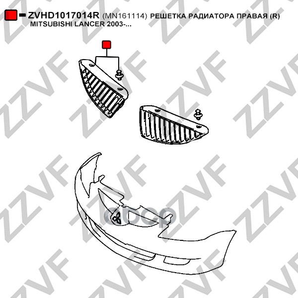 Купить запчасть ZVHD1017014R РЕШЕТКА РАДИАТОРА ПРАВАЯ R MITSUBISHI LANCER 200 с доставкой по России.