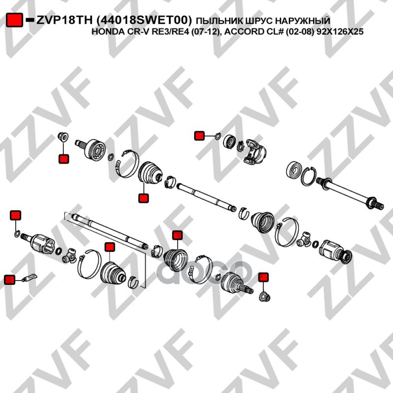 Купить запчасть ZVP18TH ПЫЛЬНИК ШРУС НАРУЖНЫЙ HONDA CR-V RE3RE4 07-12, с доставкой по России.