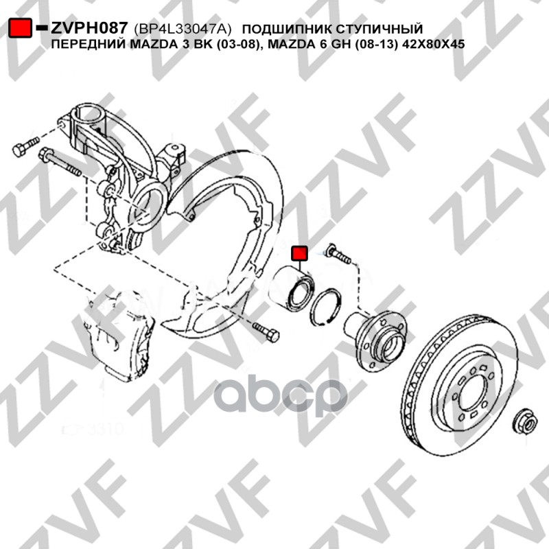 Купить запчасть ZVPH087 ПОДШИПНИК СТУПИЧНЫЙ ПЕРЕДНИЙ MAZDA 3 BK 03-08, M с доставкой по России.