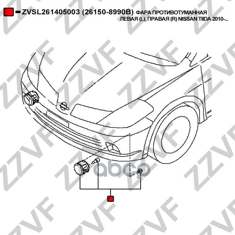 Бренд: ZZVF, артикул: ZVSL261405003, ФАРА ПРОТИВОТУМАННАЯ ЛЕВАЯ L, ПРАВАЯ R NISSAN. |