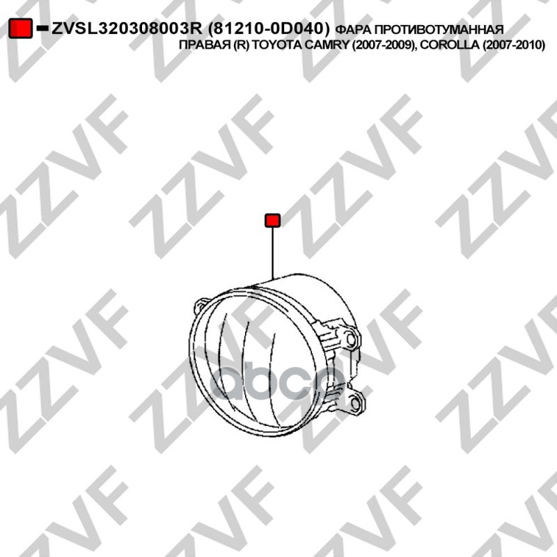 Бренд: ZZVF, артикул: ZVSL320308003R, ФАРА ПРОТИВОТУМАННАЯ ПРАВАЯ R TOYOTA CAMRY 2007. |