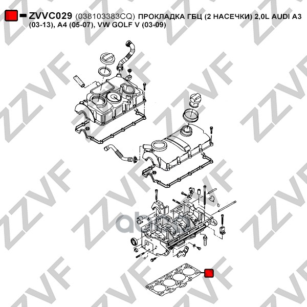 Купить запчасть ZVVC029 Прокладка ГБЦ 2 насечки 2,0L с доставкой в Эль-Монте.