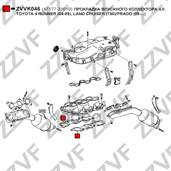 Купить запчасть ZVVK046 Прокладка впускного коллектора 4,0 с доставкой в Эль-Монте.