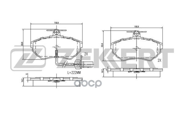 Наименование: Колодки тормозные Audi A4 I-III 94-; Seat Exeo передние дисковые с датчиком (GDB1366) Zekkert BS-2827 8E0698151M, 8E0698151B