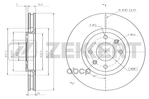 Бренд: Zekkert, артикул: BS5024, Диск тормозной Citroen C4 06-, Berlingo 08-; Peugeot 307 01-, 308 07-14 передний 283 x 26 Zekkert BS-5024 1606401480, 4246W2, 424918, 424984, 4249J6, E169142, 4246W8, 424917, 1618862780. |