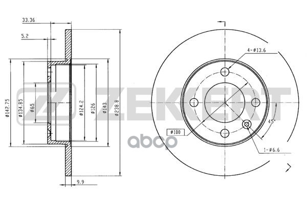 Диск тормозной VAG 80, 100 70-, Golf I-II 74-, Polo I-III 81-, Passat I-IV 73- передний Zekkert