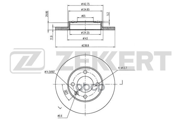 Диск тормозной Audi 80 II, III 75-; Seat Ibiza II 93-, Toledo 91- передний 239 х 11,9 Zekkert BS-5069 171615301, 171615301V, 175615301, 321615301, 3256153012, 839615301