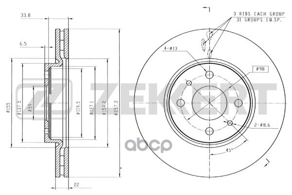 Бренд: Zekkert, артикул: BS-5086, Диск тормозной Citroen Nemo 08-; Fiat Doblo (119,223) 01-, Idea 03- передний вентилируемый 257,2 х22 BS-5086 51896287, 51896288, 60812137, 46401356, 46831041, 51896287, 51896288, 71739640, 71765641, 46542383, 60812137, 71765641, 424973, 424974, 424900000,. |