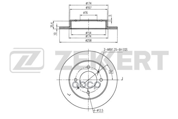 Диск тормозной Hyundai Coupe VI 96-, Elantra 00- задний 258 х 10,1 Zekeert BS-5187 5841128300, 5841129300, 5841129310