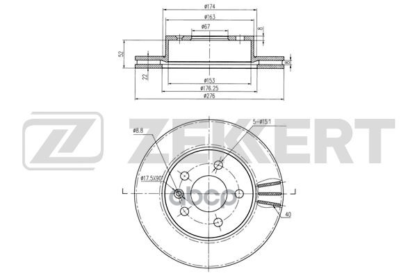 Диск тормозной MB V (W638/2) 96-, Vito (W638) 96- передний 276 х 22 Zekkert BS-5238 6384210112, A638421011205, A6384210112, 6384210112, A638421011205, A6384210112, 638421011205
