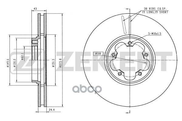 Диск тормозной Ford Transit VI 00- передний вентилируемый 276 х 24,3 Zekkert BS-5346 1456667, 1473008, 1520371, 1568654, 1738807, 1C1J1125A2D, 4041427, 4395257, 1C1J1125AB, 1C1J1125A1D, 1C1W1125AA, 1C1J1125AC, 1C1J1125AD