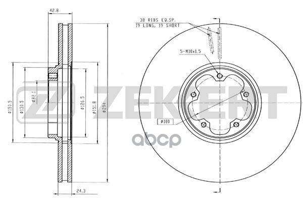 Диск тормозной Fors Transit VI 00- передний вентилируемый 294 х 24,3 Zekkert BS-5347 1387781, 1568640, 1738815, 4041428, YC1W1125B1B, YC1W1125B1A, YC1W1125BA, YC1J1125B2B