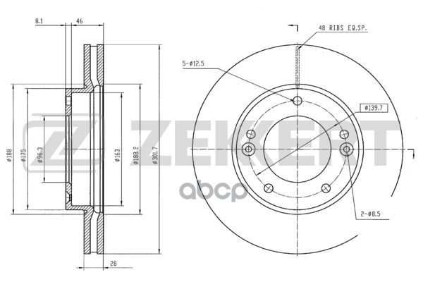 Наименование: Диск тормозной Kia Sorento I, II 02- передний вентилируемый 301,8 х 28 Zekkert BS-5475 517123E000, 517123E300