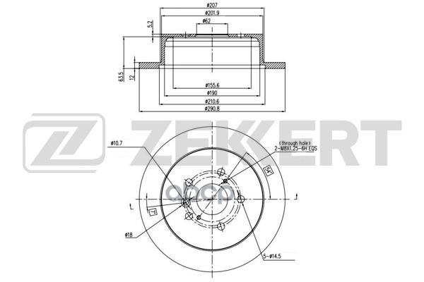 Диск тормозной Toyota Alphard (H10) 03-, Estima (R30) 00-, Ipsum (M20) задний 291 х 12 Zekkert BS-5706 4243128090, 4243128091, 4243128120, 4243128150, 4243144030, 4243144031