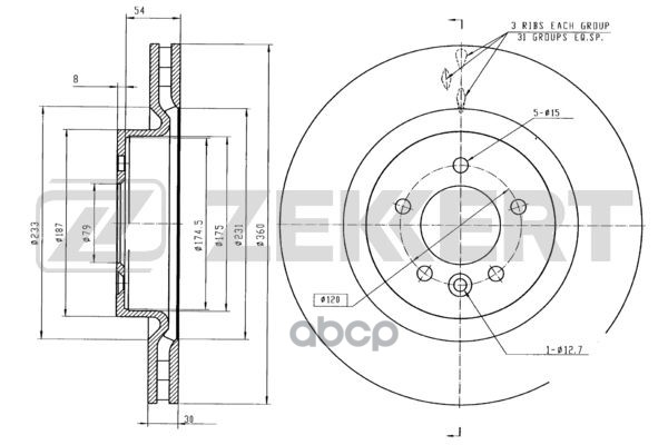 Бренд: Zekkert, артикул: BS-5721, Диск тормозной Land Rover Discovery IV 09-, Range Rover III 09- передний вентилируемый Zekkert BS572 BS-5721 SDB000621, SDB000622, SDB000623, SDB000624. |