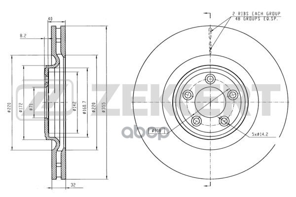 Диск тормозной ZEKKERT BS5822 перед. вентил. (354,5 x 48 x 32) Jaguar F-Type (X152) 12-, XF (X250) 0 BS-5822 C2C25337, T2R5939