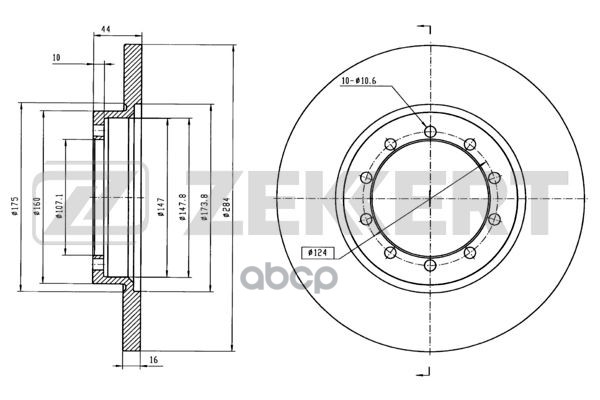 Диск тормозной Ford Transit VII 06- задний 284 х 16 Zekkert BS-5896 1488311, 8C1V2A315AA