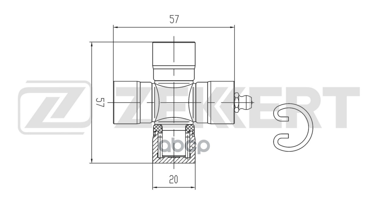 Крестовина 20,00 x 57,00 Zekkert Toyota LC 60 85-, Corolla (E20,E25,E30,E70) 72- KG-1135 UP1037412, 0437110010, 3743110010, 0437110011, 3741110011, 3741110010