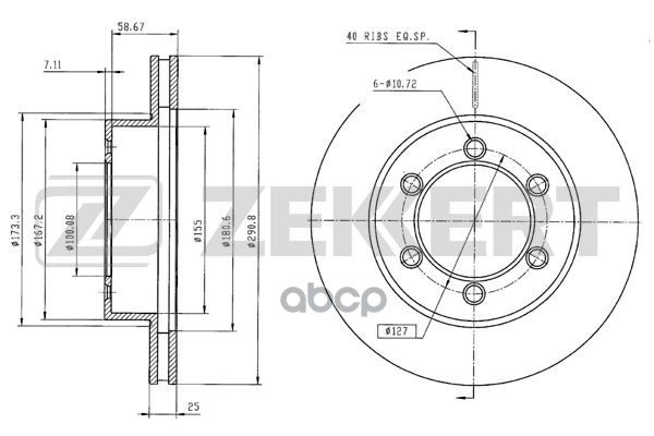 Диск тормозной ZEKKERT BS5501 перед. вентил. (289 x 65 x 20) Great Wall Safe 02-, Toyota 4Runner (N1 BS-5501 4351235110, 4351235190, 4351235270, J4351235190
