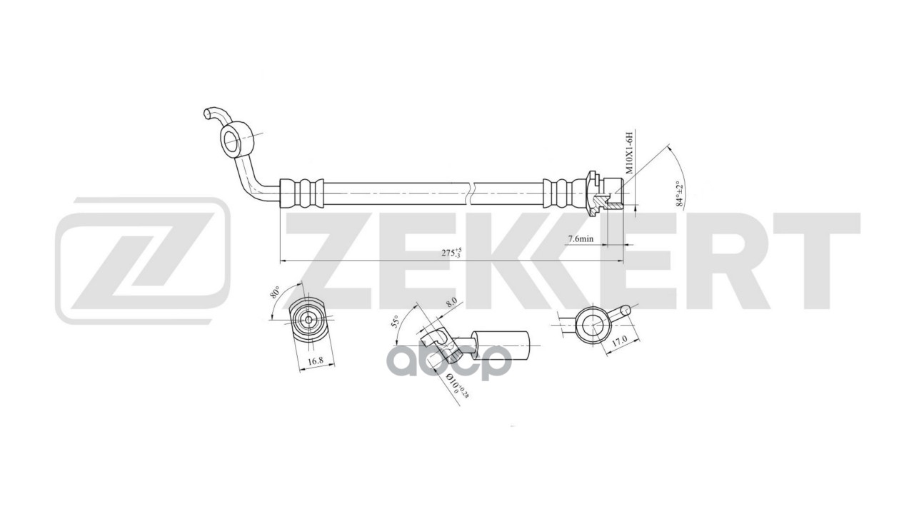 Шланг тормозной ZEKKERT BS9142 Toyota Corolla (E100) 92-, Corolla (E110) 97- BS-9142 9094702660, 9094702726, 9094702727, 9094702799, 9094702912, 9094702913