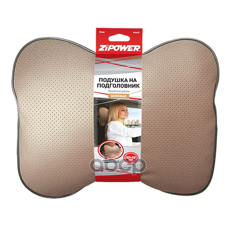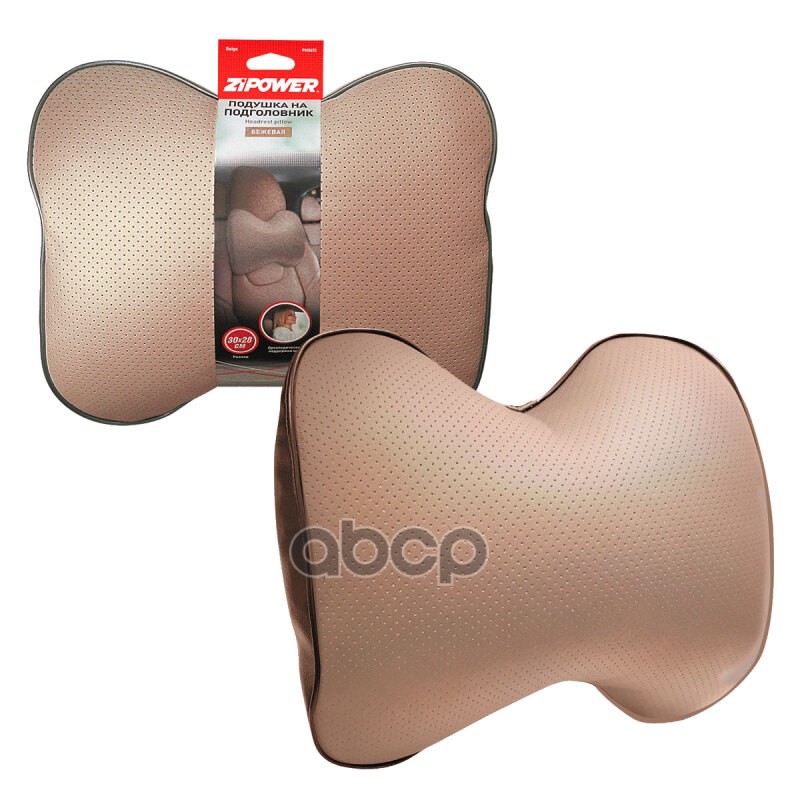 Наименование: Подушка на подголовник 30х28см экокожа бежевая ZIPOWER