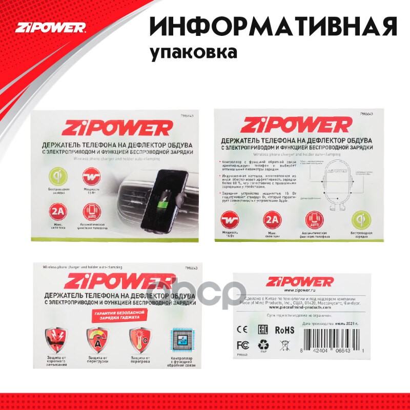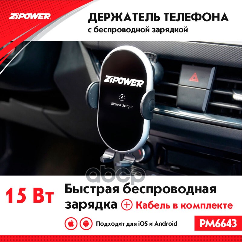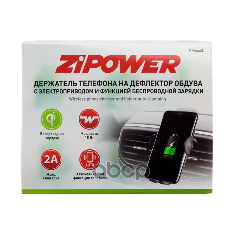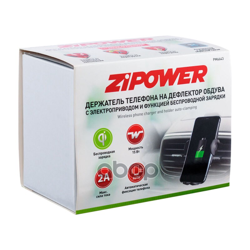 Наименование: Держатель телефона Zipower на дефлектор с функцией беспроводной зарядки 15 Вт 5 В/2 A QI PM6643