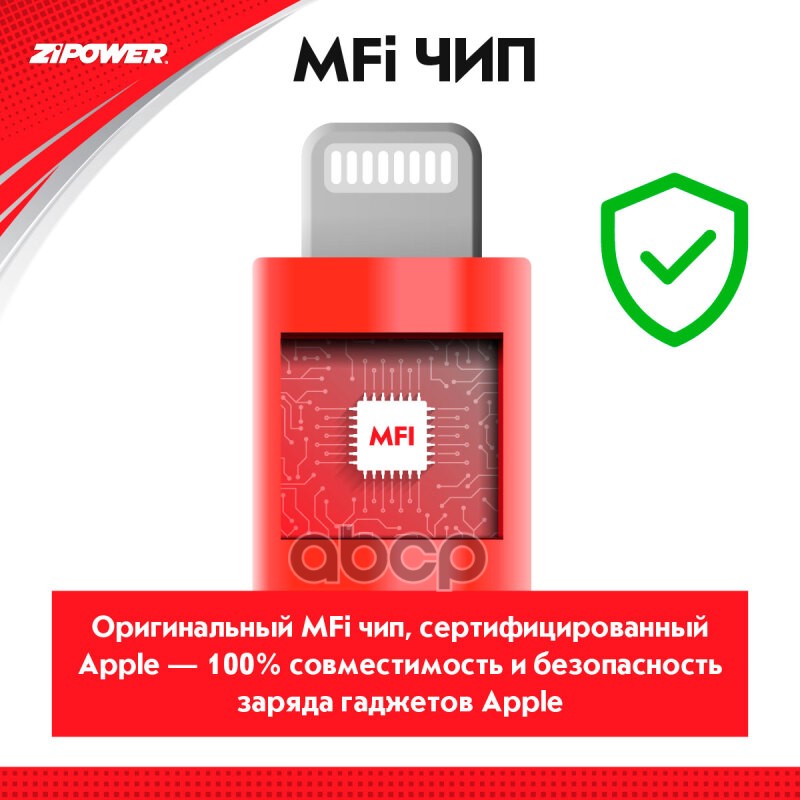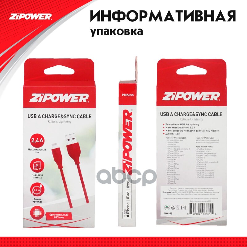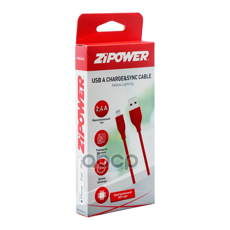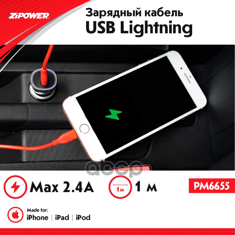 Наименование: Кабель USB A — Lightning 2.4 A 1 м Zipower PM6655