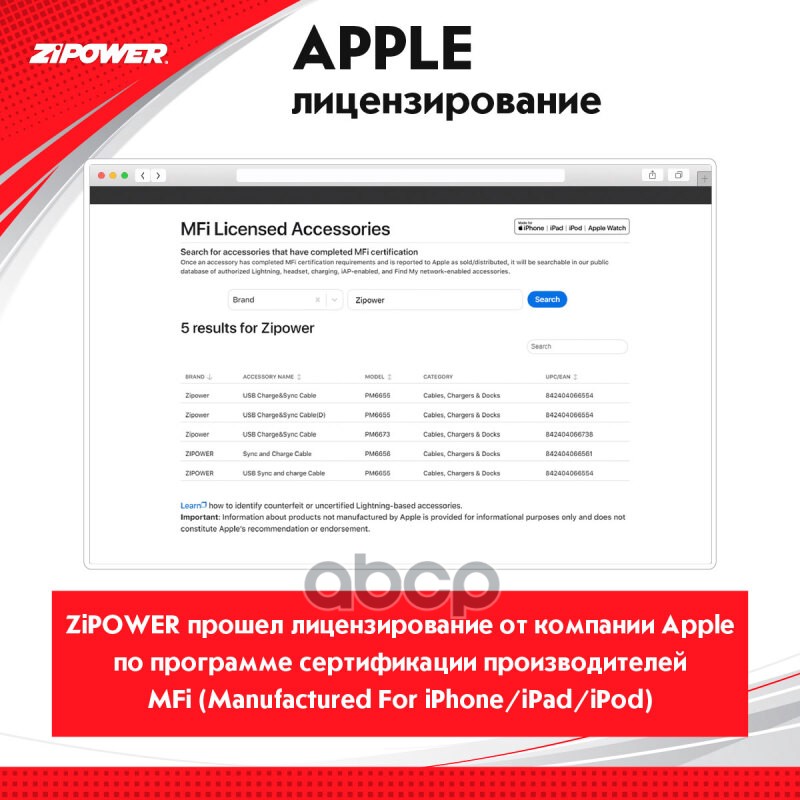 Купить запчасть PM6655 Кабель USB A — Lightning 2.4 A 1 м Zipower PM6655 с доставкой в Эль-Монте.