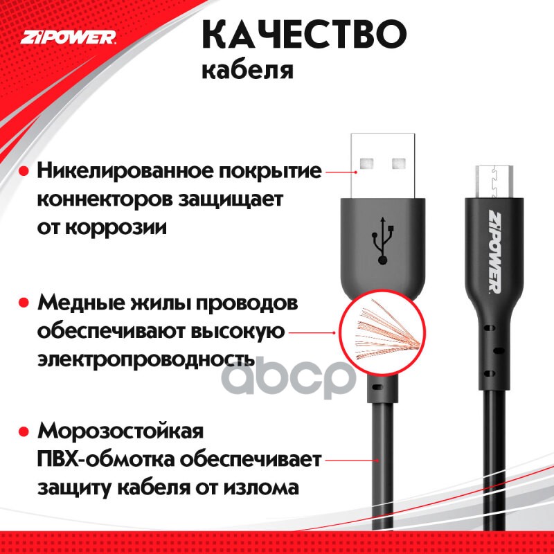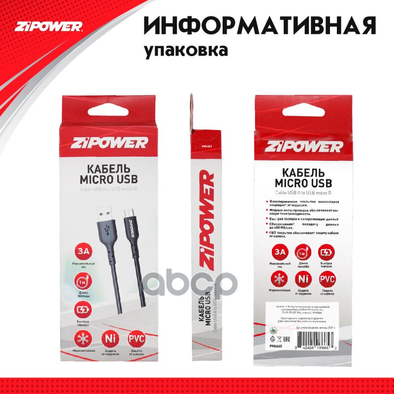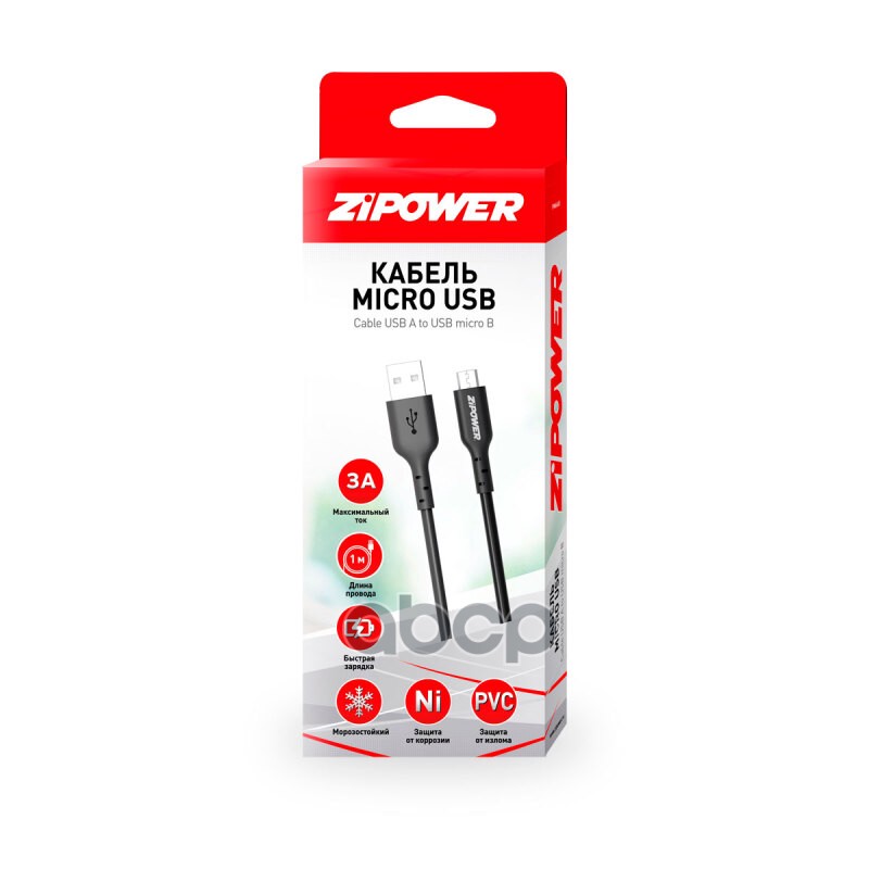 Наименование: Кабель micro USB 1 м 3 A Zipower PM6665