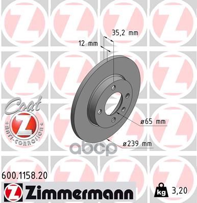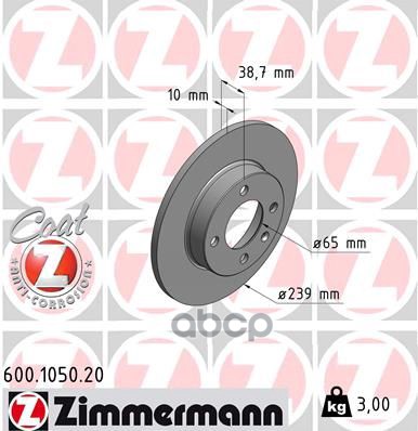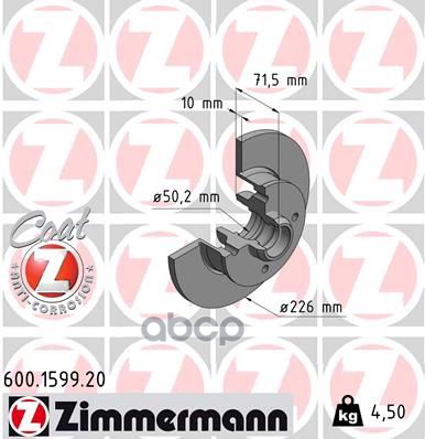 Диск тормозной TOYOTALEXUS HIGHLANDERRX IV 15- задн.Coat Z ZIMMERMANN 590284620