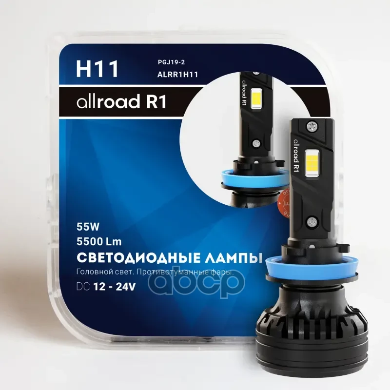 H11/H8/H9/H16 12-24V 55W (PGJ19-1/2/3/5) Лампа LED R1 (6000K) (Allroad) (к-т. 2 шт.)