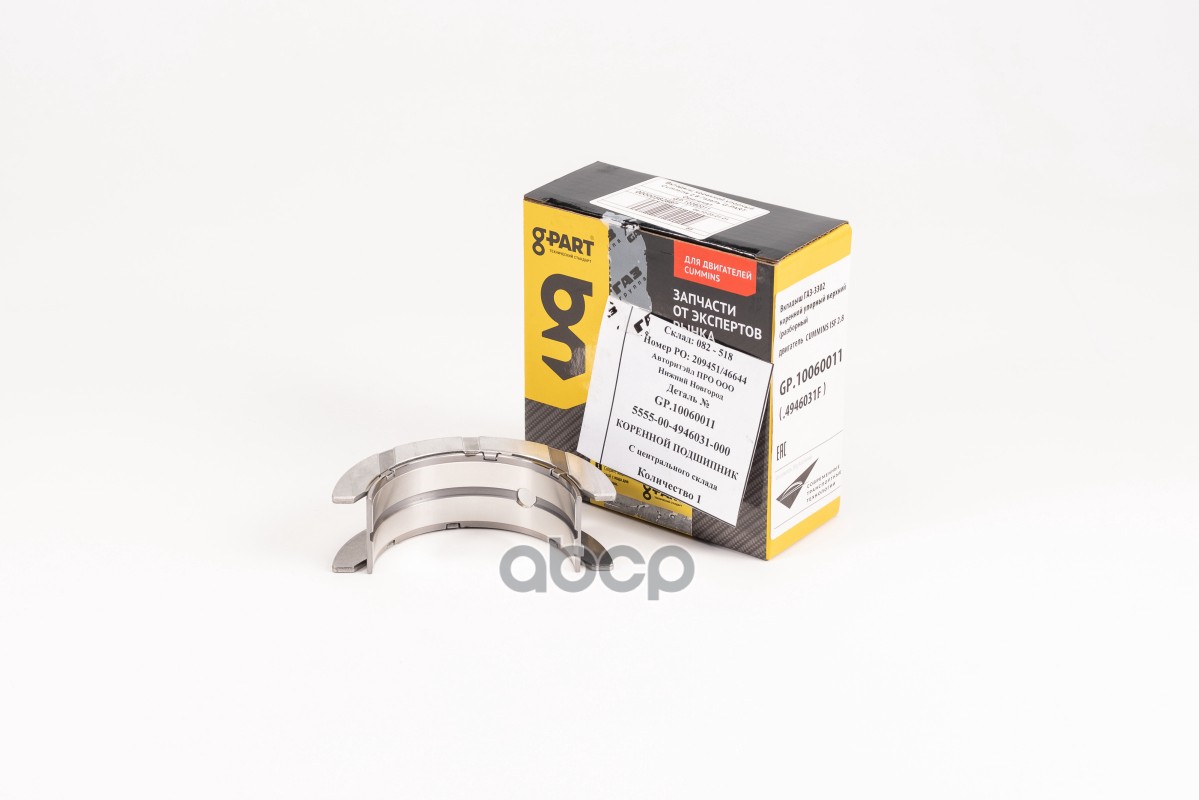 Вкладыш Г-3310 двс Cummins 3,8 коренной верхний G-PART 4948504 4948504, 4948504F, GP10060008