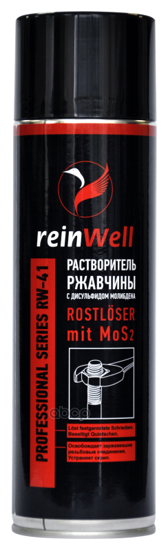 Раствор.ржавчины с дисульф.молибдена MoS2 RW-41 (0,5л) Средство отлично растворяет ржавчину, а специальное вещество, дисульфид молибдена (MoS2), обеспечивает смазку на резьбе, что нивелирует наличие на ней повреждения, вызванного коррозией